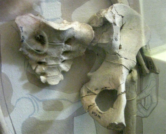Таз и крестец Australopithecus afarensis ("Люси"). Палеонтологический музей. Москва. Фото: А. Соколов.