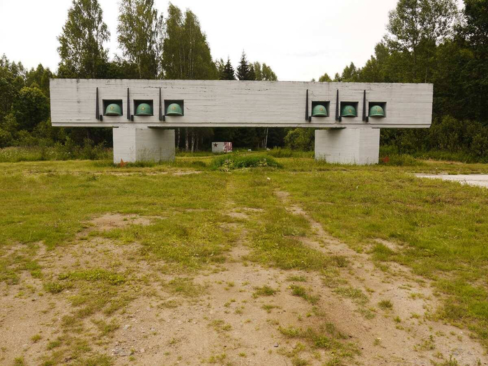 Увидеть в такой глуши настолько грандиозный монумент было неожиданно. Выглядит внушительно: забетонированная парковка, вход оформлен в виде шести гигантских солдатских касок, вставленных в ниши бетонного обелиска.