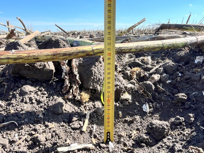 На фото: демо Vega 12 захватом 6 м в паре с трактором Challenger MT865 мощностью 525 л/с. Фон – поле после подсолнечника урожайностью 35 ц/га. Глубина работы – 20 см, скорость – 15 км/ч. Курская область.