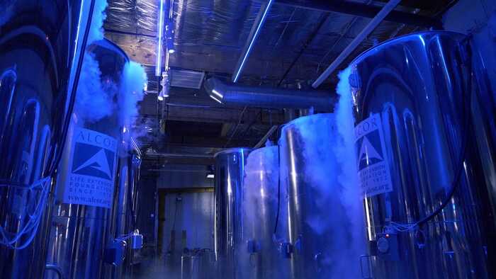 После получения справки ваше тело срочно мчат к крионистам, чтобы заменить ваши телесные жидкости на специальное вещество-криопротектор, а потом засунуть в гигантскую бутылку-термос с жидким азотом, сосуд Дьюара.
