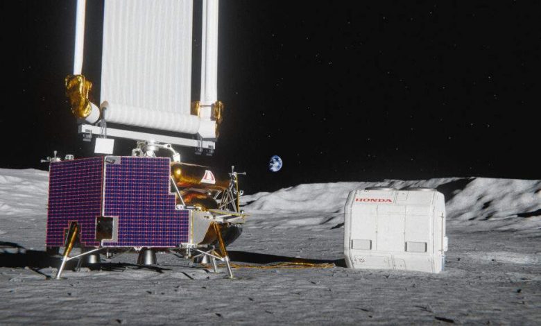 Концептуальное изображение решения, интегрирующего регенеративную систему топливных элементов Honda с технологией вертикальных солнечных панелей (Vertical Solar Array) от Astrobotic. Компании Astro...