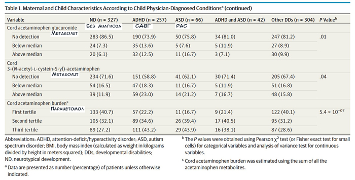 Эта единственная статья называется «Связь биомаркеров пуповинной плазмы при внутриутробном воздействие ацетаминофена[парацетамола] с риском развития синдрома дефицита внимания и геперактивности[СДВГ] и расстройств аутистического спектра[СДВГ] у детей.