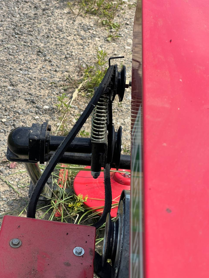Еще проблема - то ли я не правильно её установил, то ли она криво собрана, но получилось так, что натяжной ролик приводного ремня стоит не соосно двум остальным роликам. Из-за этого ремень просто в тряпку сожрался за 20 минут покоса: