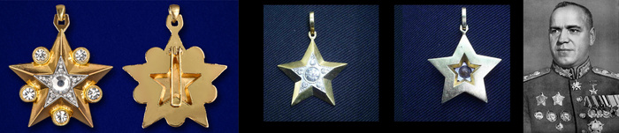 На фото звёзды "большого" и "малого" типов, а также она на шее у маршала Г. К. Жукова.